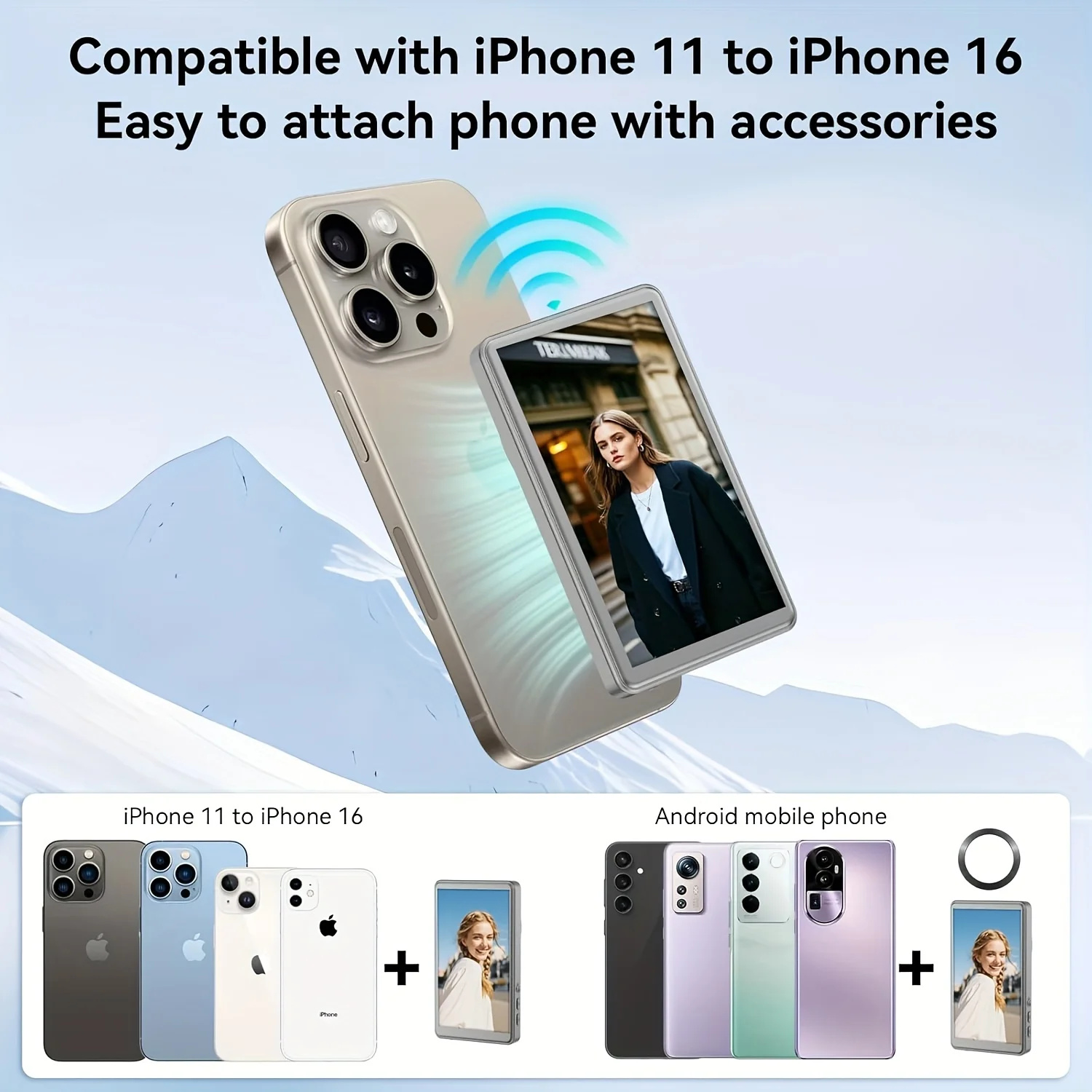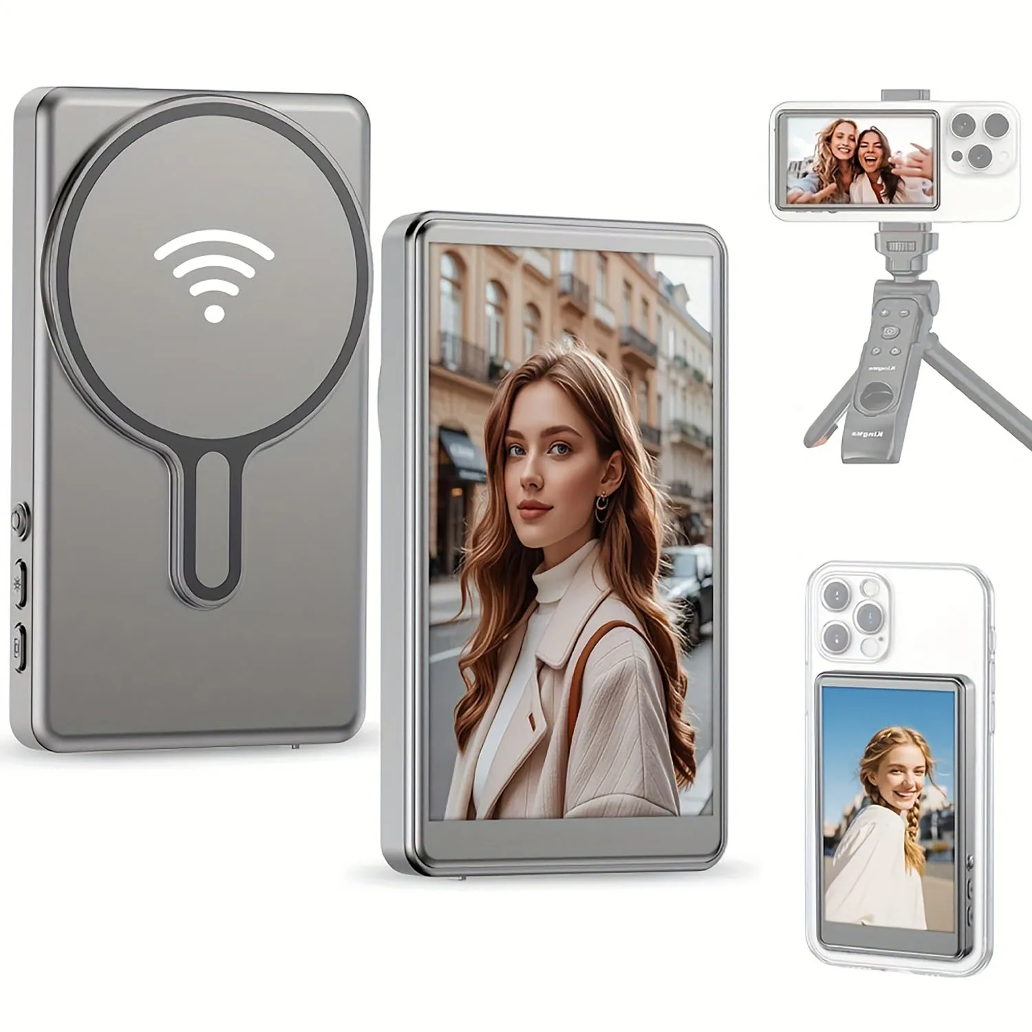 Mobile Phone Magnetic Selfie Monitor Screen for Rear Camera Vlogging and Real-Time Streaming on iPhone and Android Devices